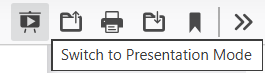 On a larger display, such as a desktop, the toolbar displays some buttons, and the first is “Presentation Mode”. When you hover your mouse over it, a tooltip displays, “Switch to Presentation Mode”. Click the button for a full screen display.