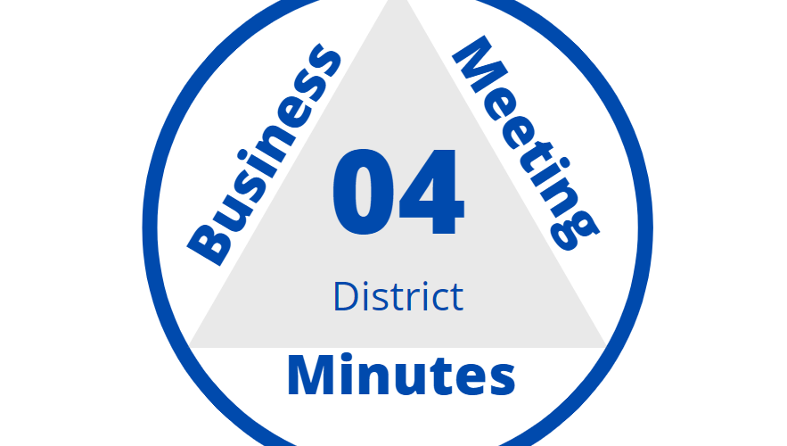 December 4, 2024 Business Meeting Minutes DISTRICT 04 MID SOUTHERN CALIFORNIA AREA 09 PANEL #74 BUSINESS MEETING December 4, 2024 Minutes Notice of the regularly scheduled monthly business meeting was distributed via e-mail. The agenda and notice that District 04 meetings are regularly held on the 1st Wednesday of each month also appear on the … Continue reading December 4, 2024 Business Meeting Minutes