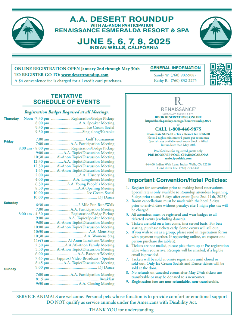A.A. DESERT ROUNDUP WITH AL-ANON PARTICIPATION JUNE 5, 6, 7, 8, 2025