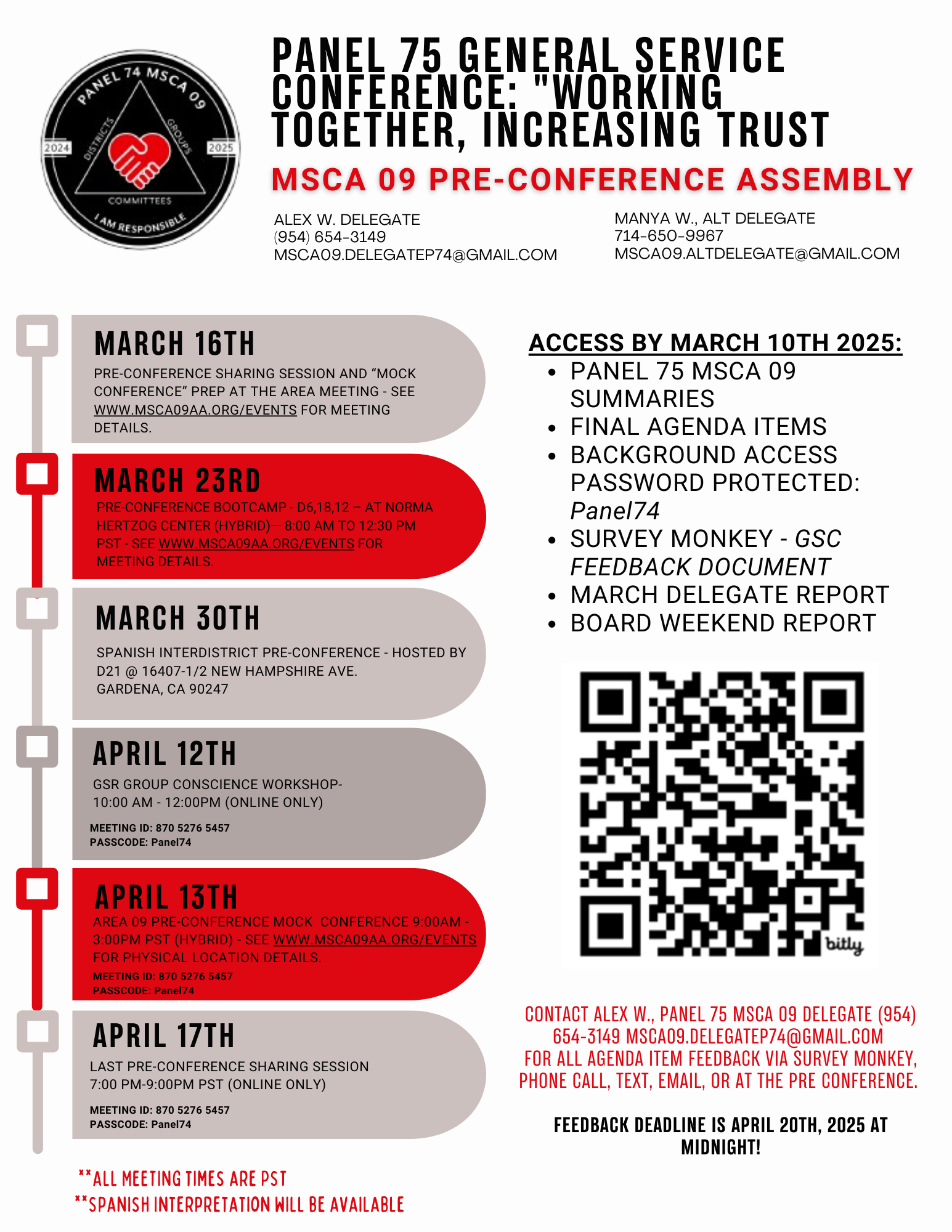 MEETING ID: 870 5276 5457 PASSCODE: PaneI74