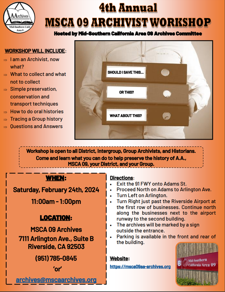 Hosted by Mid-Southern California Area 09 Archives Committee